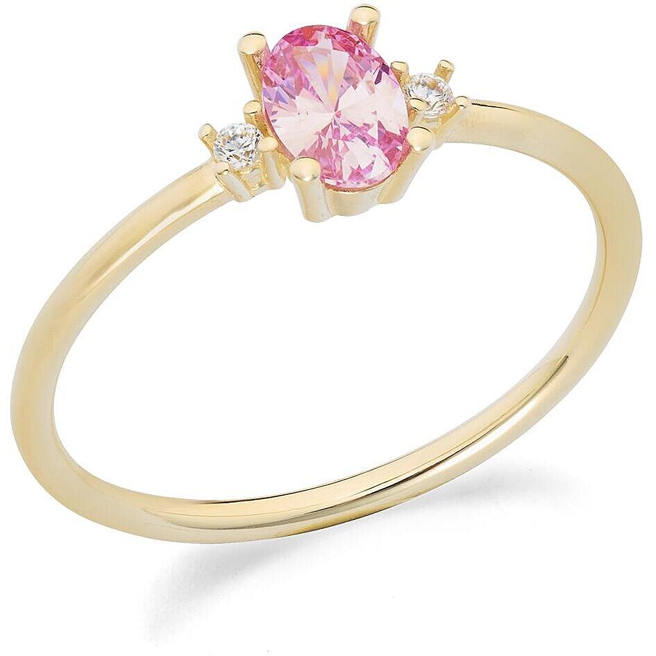 Anello in oro giallo 375% con zirconi bianchi e rosa.