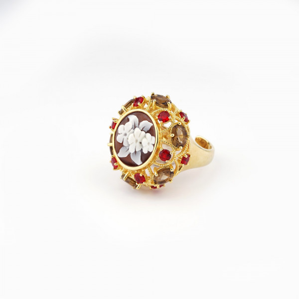 Anello con cameo inciso a mano su conchiglia e argento 925.
