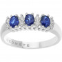 L’anello Trilogy è realizzato in Oro bianco 750‰ e Diamanti bianchi della caratura di 16 Punti Carati per esaltare gli Zaffiri. Regala gli Zaffiri blu ovali dalla caratura totale di 0,80 Carati per dichiarare fedeltà eterna. Un talismano di colore prezioso naturale per ogni occasione: anniversario, compleanno o traguardo per regalare emozioni uniche.