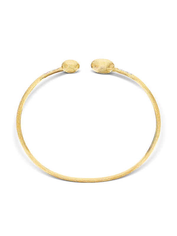 Elegante bracciale a schiava in oro 18kt con raffinati pavé in brillanti, realizzata interamente a mano dai nostri artigiani.