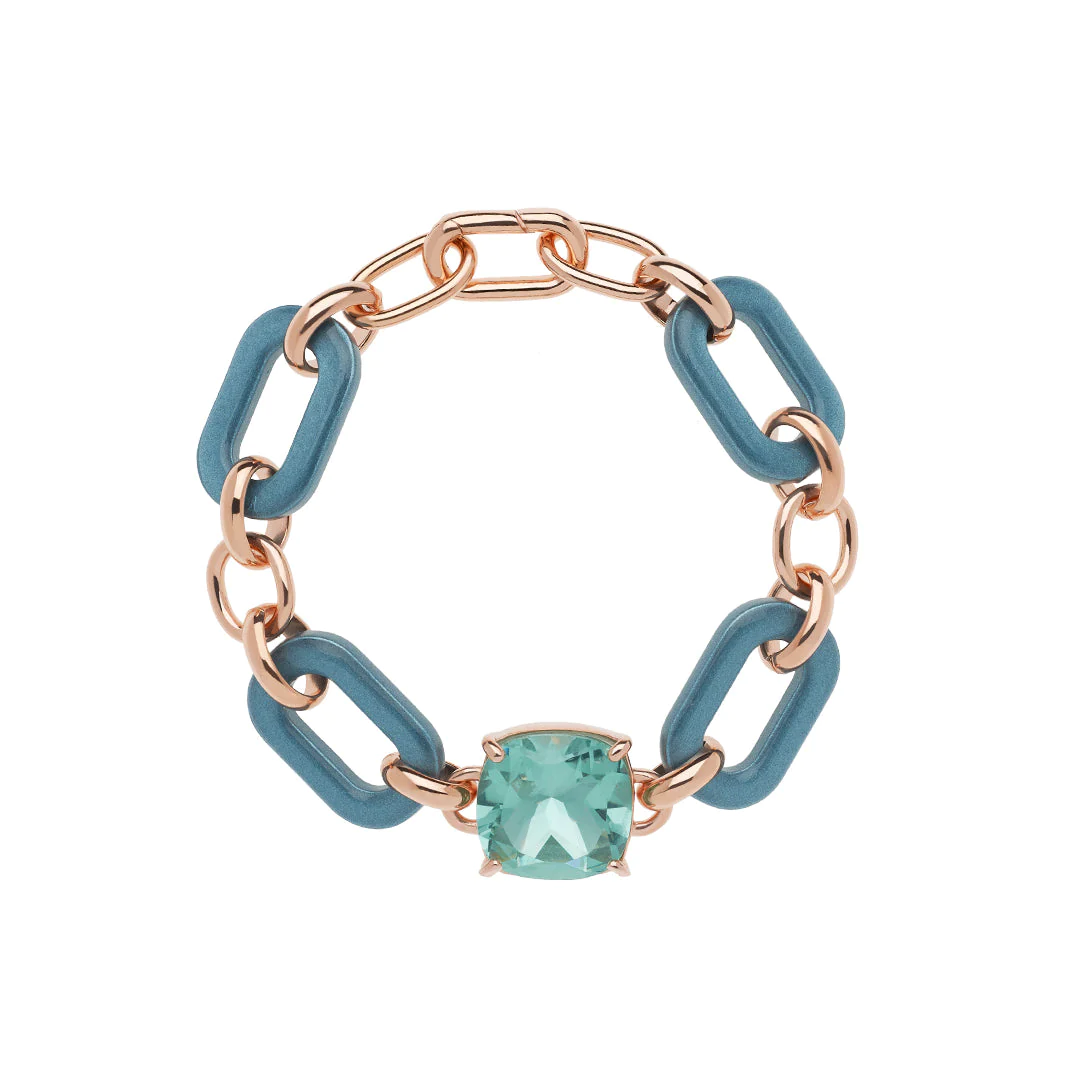 Bracciale realizzato in Italia, in legno d’ulivo laccato e smaltato a mano, metallo antiallergico placcato oro 24 carati, impreziosito con quarzi idrotermali. Misure Bracciale: 18 cm.