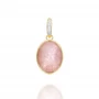 Ispirato all’inconfondibile Rosolio, ottenuto dalla macerazione ed infusione di profumatissimi e delicatissimi petali di rosa, questo prezioso charm darà al vostro stile un tocco romantico e unico. In questo gioiello l’iconica e sinuosa boule Nanis in oro 18kt incontra e abbraccia una triplette di cristallo di rocca, quarzo fragola e madreperla, che incanta i sensi con la sua dolcezza floreale.