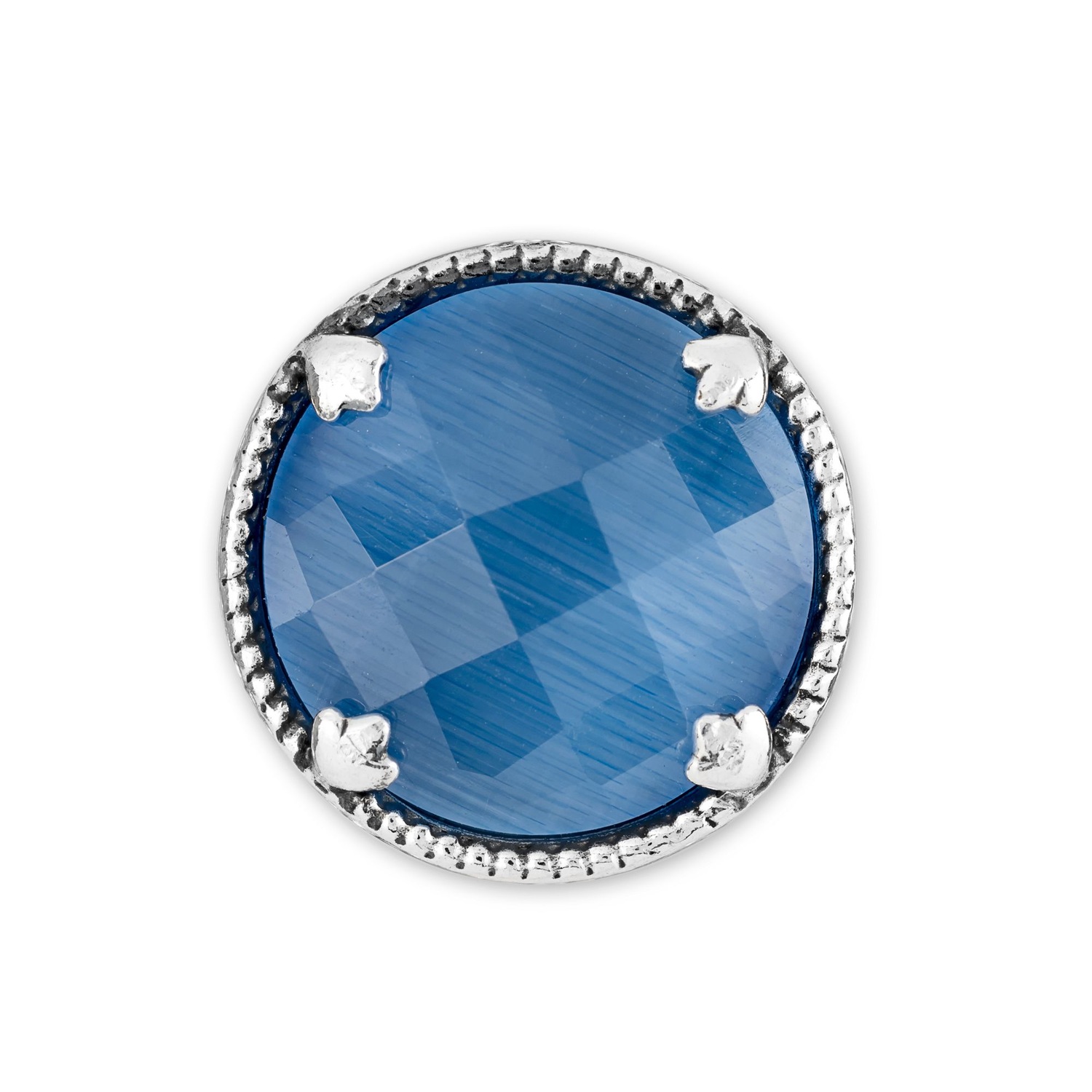 Componi il tuo gioiello abbinando la Chicca in Argento 925/000 e occhi di gatto colore azzurro all’anello, al bracciale o al ciondolo base. Gioiello base e chicca si attraggono grazie alla presenza di un elemento magnetico e con un piccolo giro si bloccano. Scegli ogni volta la tua chicca preferita e vesti di nuovo il tuo gioiello!