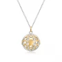 Questa elegante collana Chiama Angeli è un gioiello raffinato e ricco di significato, ideale per chi cerca un simbolo di protezione e serenità. Il ciondolo sferico è finemente traforato, con un design che abbina un angelo centrale circondato da cuori in argento giallo, distribuiti armoniosamente lungo tutta la superficie. Gli inserti di zirconi luminosi, posizionati tra i cuori, aggiungono una brillantezza delicata e sofisticata, valorizzando ogni dettaglio del gioiello.