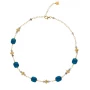 Girocollo realizzato a mano in argento 925 placcato oro giallo, legno laccato e smaltato e un mix di pietre naturali: