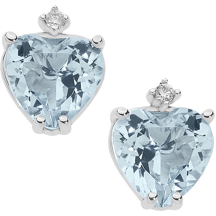 Orecchini da donna di Comete della collezione fantasia di acquamarina. Orecchini in oro 750‰ con diamanti p. Ct. 1,5 colore g purezza si e acquamarina taglio cuore 6mm ct. 1,4.