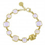Bracciale in AG 925‰ placcato oro giallo 23 ct con saponette quadrate accoppiate satinate a mano e paste vitree taglio antico rosa. Cm 18 + ext