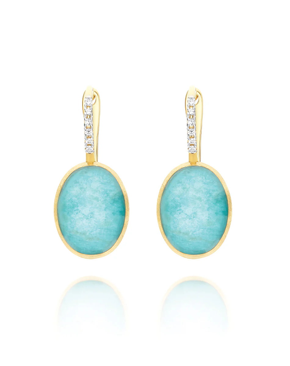 Le iconiche Ciliegine Nanis si tingono di una scintillante tonalità verde-azzurra in questa edizione chiamata “Anice” e ispirata proprio all’omonima pianta dall’aroma intenso e deciso. L’oro 18kt incontra infatti in questi orecchini una doublette in cristallo di rocca e amazzonite, riscrivendo con eleganza il sapore e il fascino di questo gioiello, pensato per dare un tocco di unicità al tuo stile. Il nostro consiglio? Gioca con i diversi colori e modelli della linea Ciliegine e crea la tua combinazione preferita.