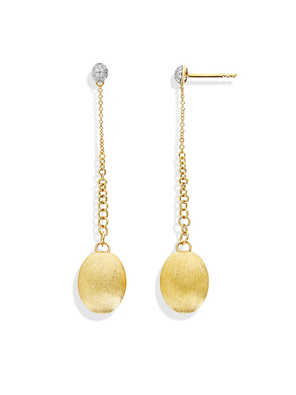 Orecchini in oro 18kt e diamanti realizzati interamente a mano.