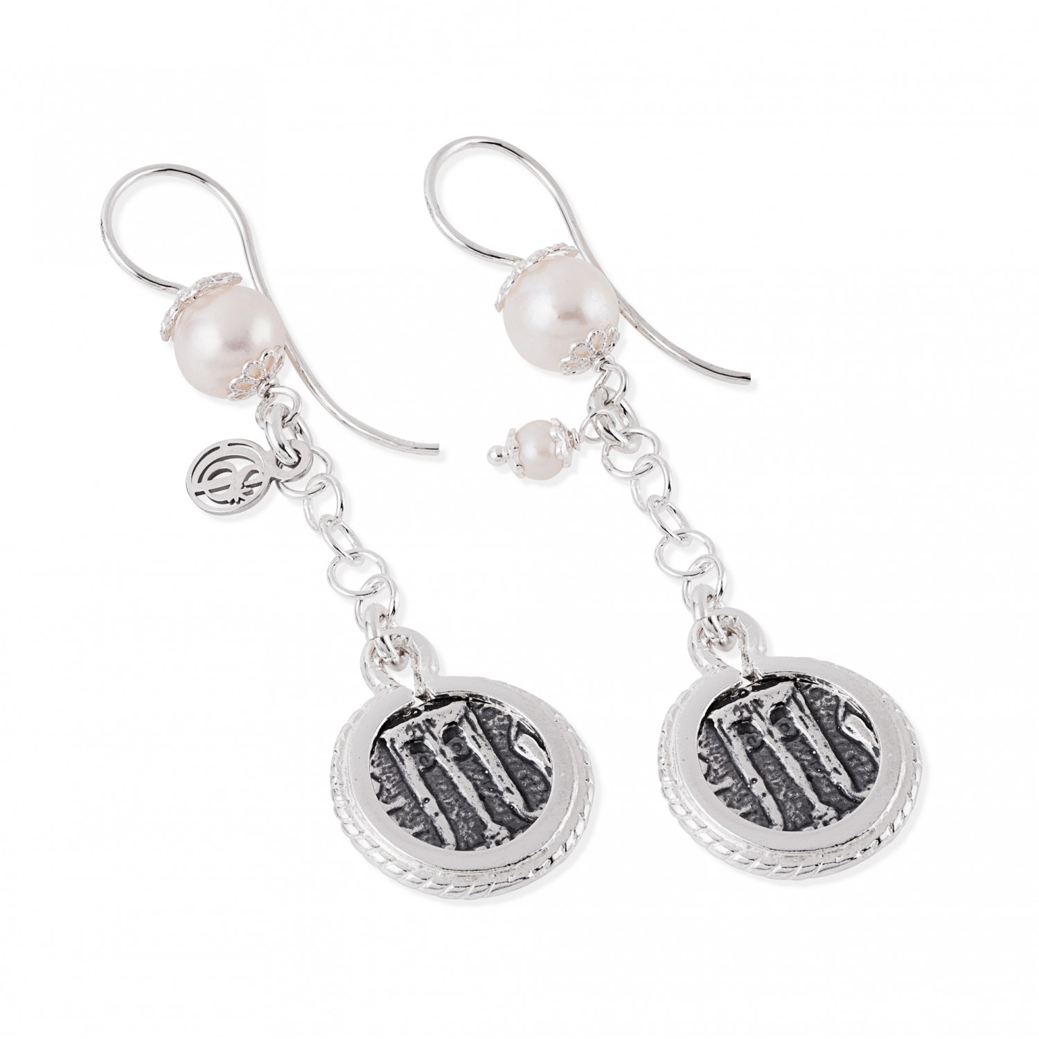 Orecchini con Perle bianche coltivate e Monete in Argento 925/000.