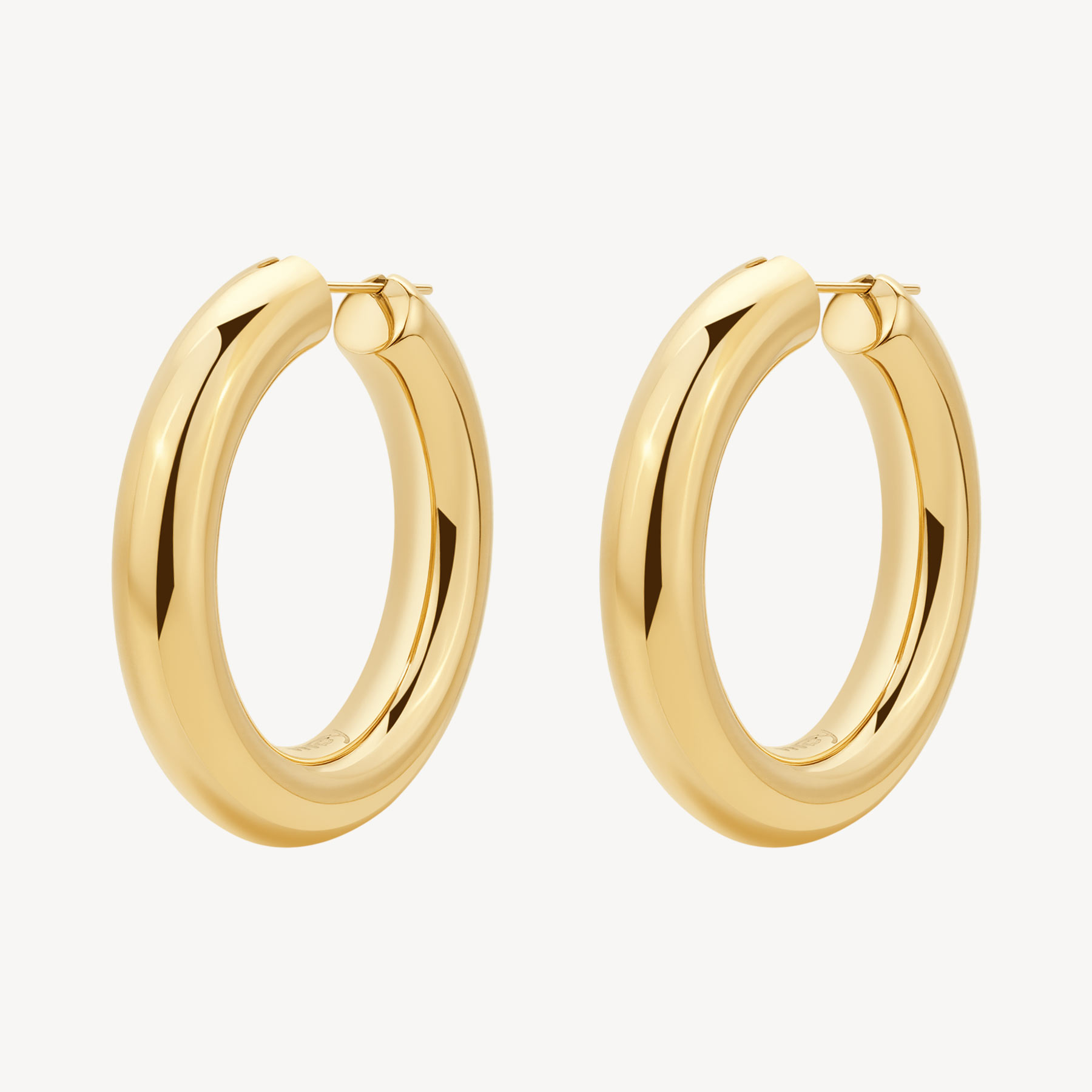 Orecchini Brosway della collezione Aura. Realizzati a cerchio in acciaio anallergico 316L con finitura pvd oro 14K.
